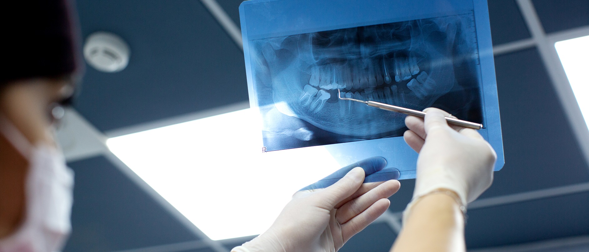 Enseña uno o dos dientes completos desde la raíz hasta la corona.